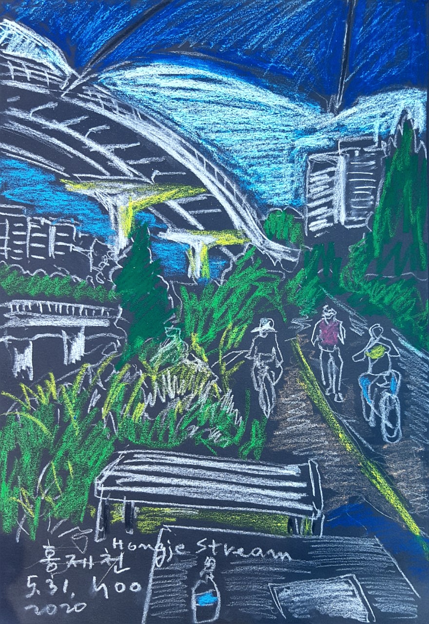 scenery at Buam-dong, Jongno-gu, white chalk, pastels, 30 x 42 cm